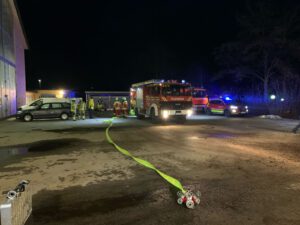 Rauchentwicklung in Förderschnecke der Hackschnitzelanlage. AT-Trupp in Bereitstellung.